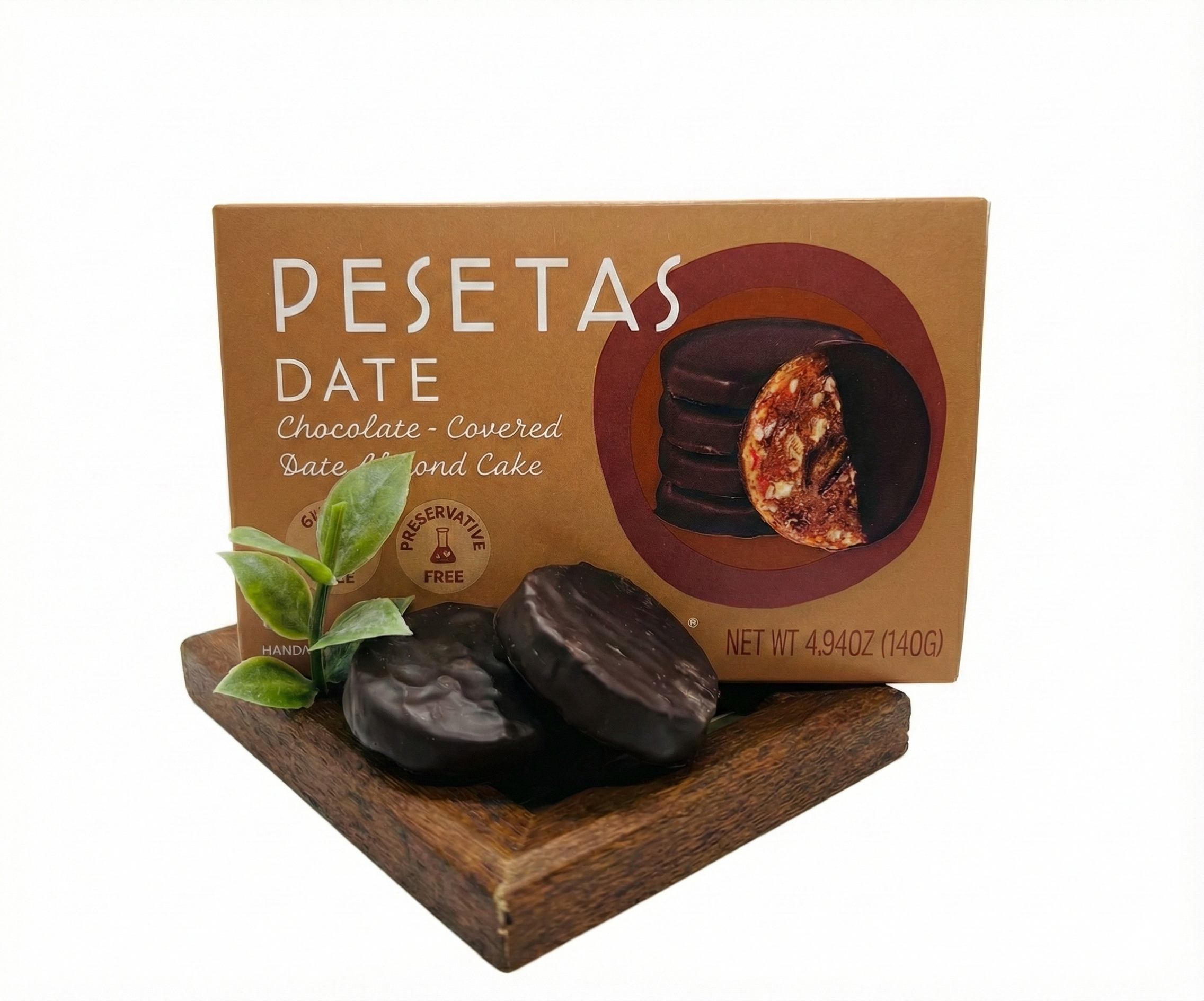 Date almond cake, dipped in chocolate, soft, juicy.